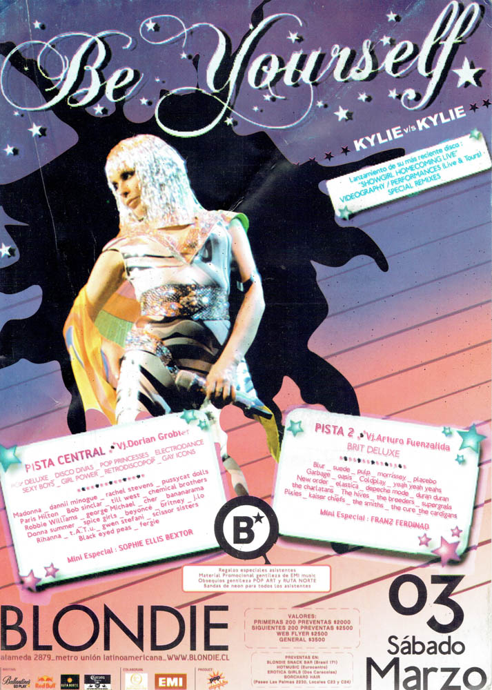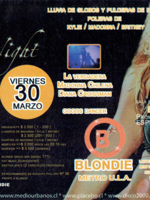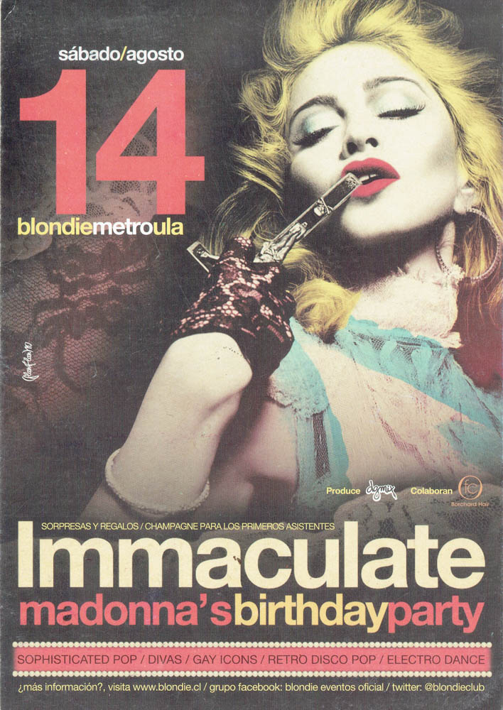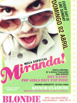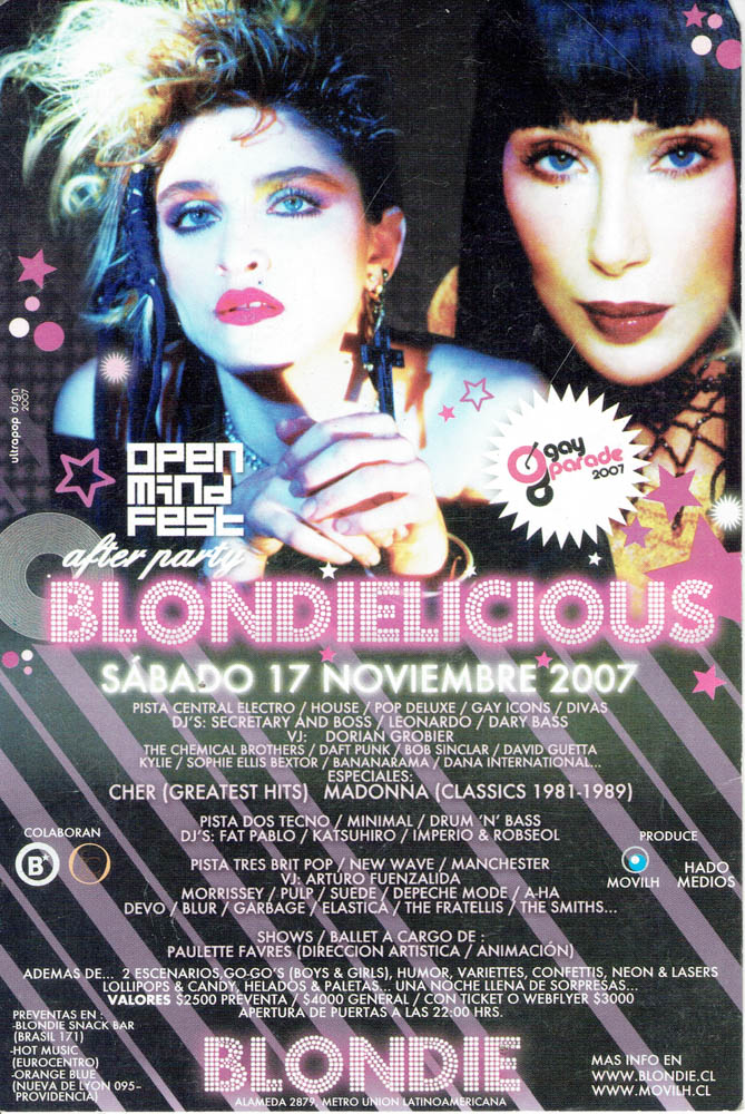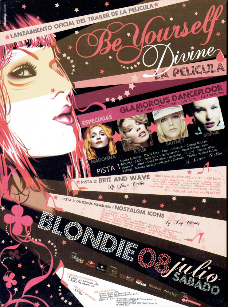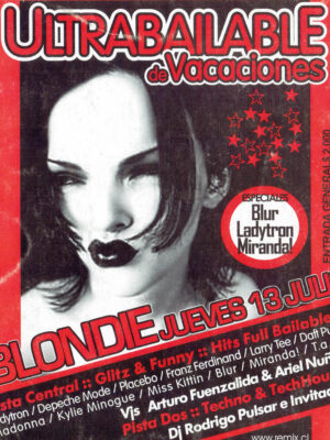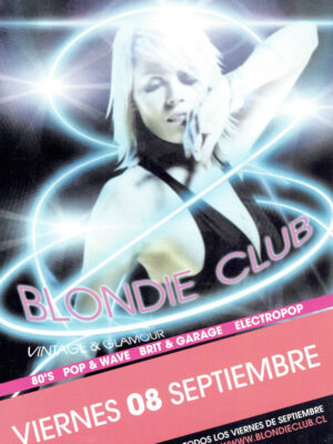 Una parte esencial de esa historia vive en su memoria gráfica. Los afiches, flyers y visuales que acompañaron las fiestas de Blondie no solo convocaban al baile, sino que construyeron una estética propia: audaz, colorida, irreverente y profundamente política. Diseñadores como Cristian Soto, Isabel Valencia y Mística Valenzuela, entre otros, aportaron su mirada al imaginario visual de club, combinando influencias del punk, el new wave, el art pop y la gráfica de protesta. Aquellos afiches, muchas veces creados con técnicas manuales o collage digital, se transformaron en piezas de arte urbano que documentan la evolución de las tendencias musicales, los lenguajes visuales y las identidades que habitan la noche. Cada tipografía, cada imagen, cada color, cuenta también la historia de una época y de una comunidad que hizo del diseño una forma de resistencia cultural.