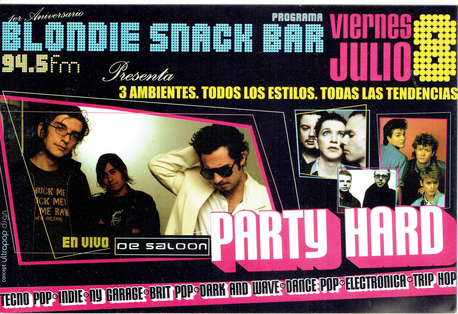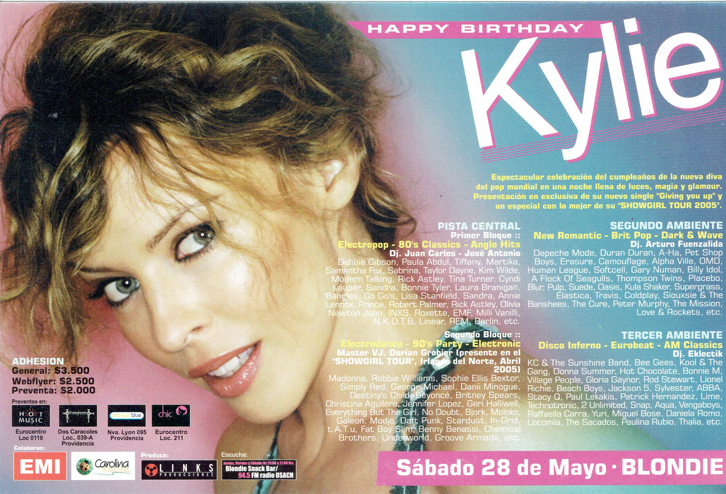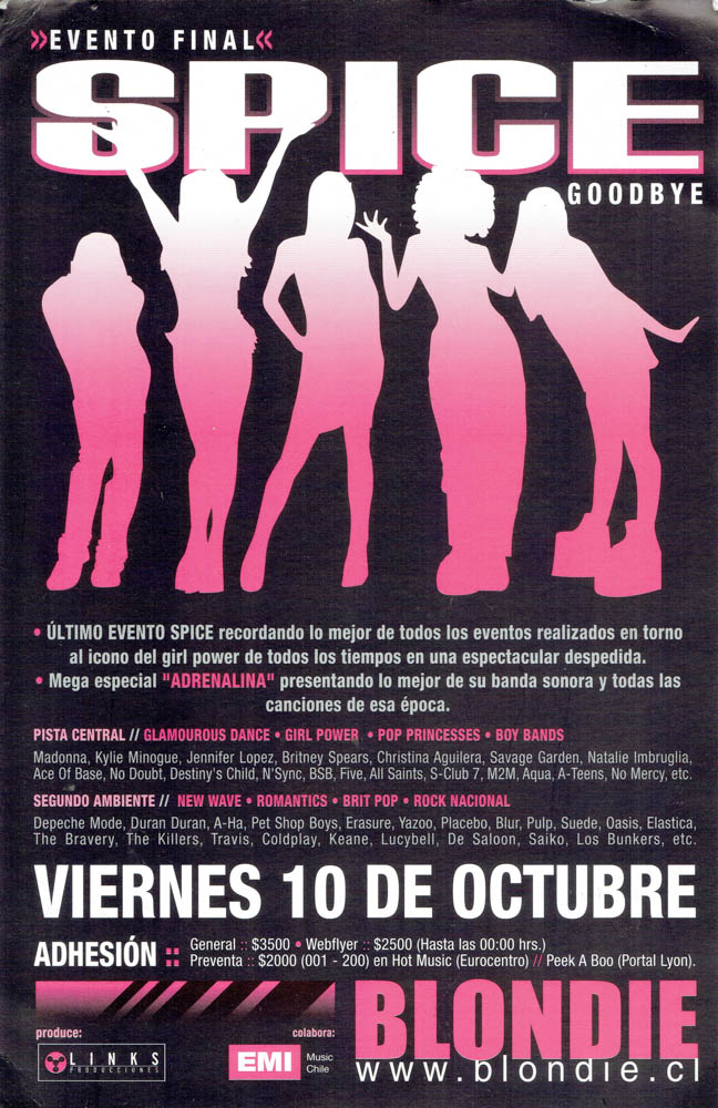 Una parte esencial de esa historia vive en su memoria gráfica. Los afiches, flyers y visuales que acompañaron las fiestas de Blondie no solo convocaban al baile, sino que construyeron una estética propia: audaz, colorida, irreverente y profundamente política. Diseñadores como Cristian Soto, Isabel Valencia y Mística Valenzuela, entre otros, aportaron su mirada al imaginario visual de club, combinando influencias del punk, el new wave, el art pop y la gráfica de protesta. Aquellos afiches, muchas veces creados con técnicas manuales o collage digital, se transformaron en piezas de arte urbano que documentan la evolución de las tendencias musicales, los lenguajes visuales y las identidades que habitan la noche. Cada tipografía, cada imagen, cada color, cuenta también la historia de una época y de una comunidad que hizo del diseño una forma de resistencia cultural.